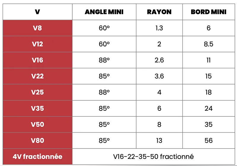 - Outillage spécifique : Large panoplie de poinçons et matrices fractionnés, incluant des poinçons rayon (R=0.8 et R=6.3).